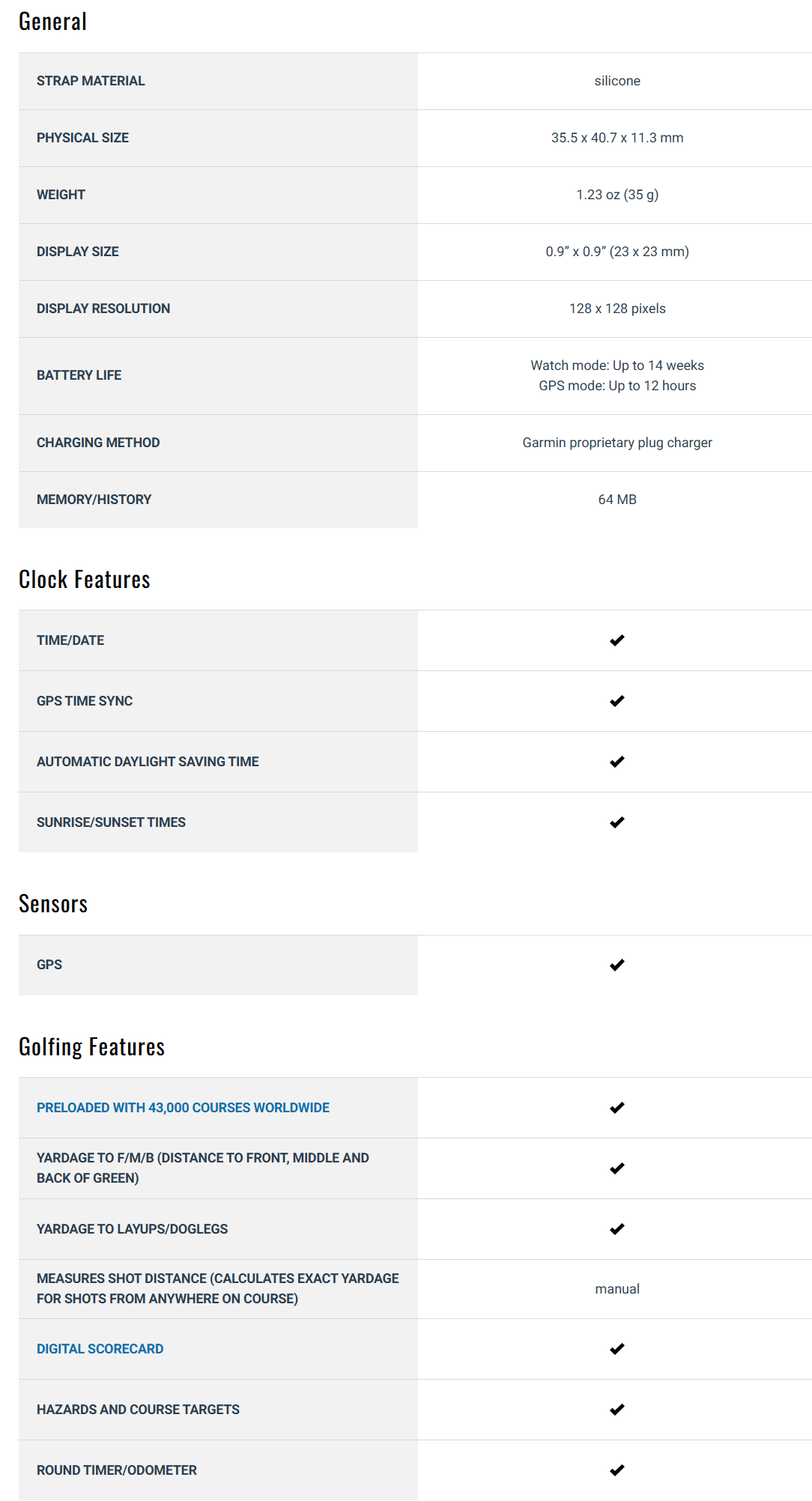 - Application Garmin Golf™ : rejoignez les classements et tournois hebdomadaires pour plus de compétition et de plaisir.