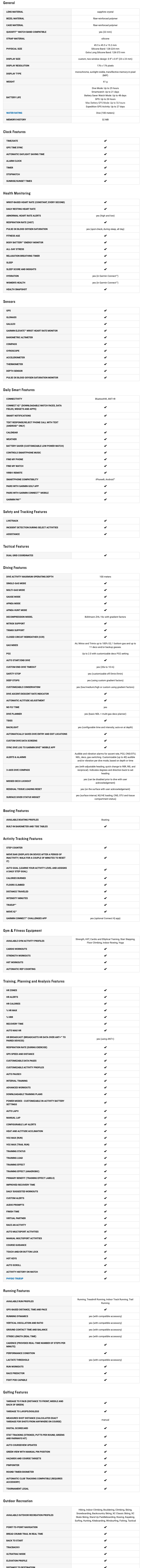 - Autonomie de la batterie prolongée : restez immergé plus longtemps avec jusqu'à 25 heures en mode plongée, 21 jours en mode montre intelligente et 26 heures en mode GPS.