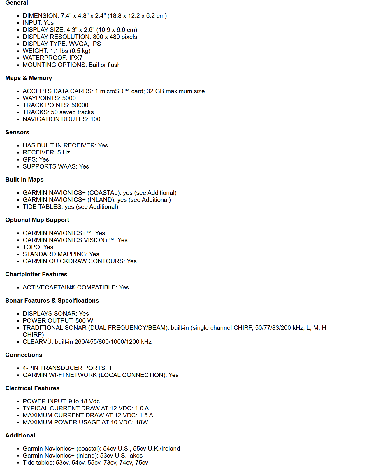 - Advanced Sonar Support: Features Garmin CHIRP Traditional Sonar for better target separation and ClearVü™ Scanning Sonar for high-resolution imaging.