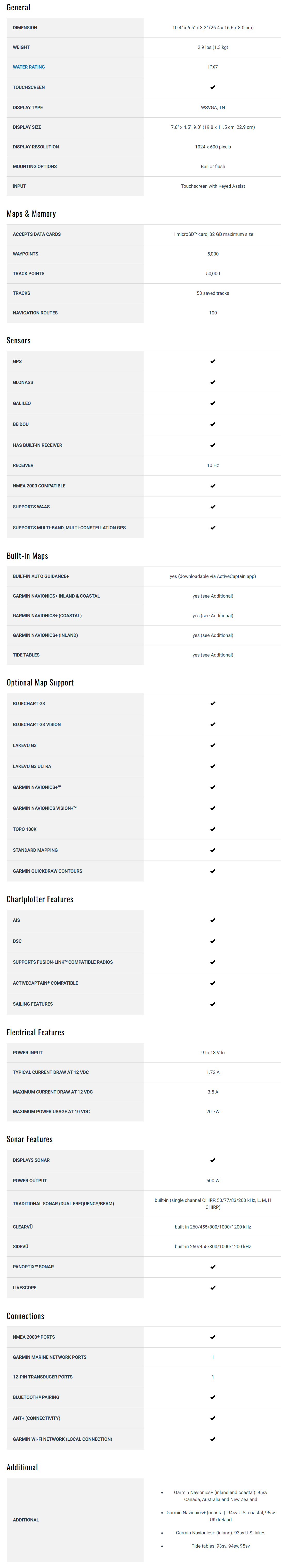 - Preloaded Garmin Navionics+™: Detailed inland mapping with a 1-year subscription for daily updates.