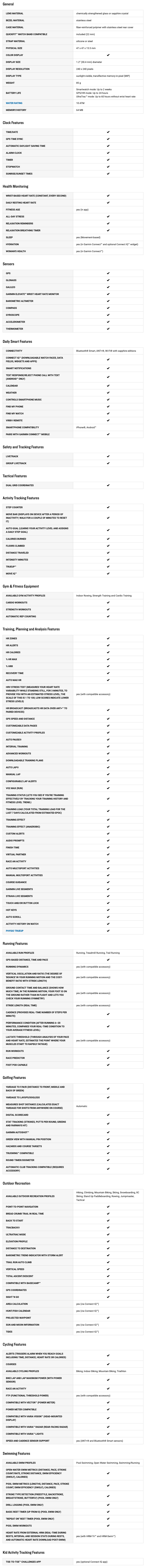 - Longue durée de vie de la batterie : profitez jusqu'à 2 semaines en mode montre intelligente, 24 heures en mode GPS ou 60 heures en mode économie de batterie UltraTrac.