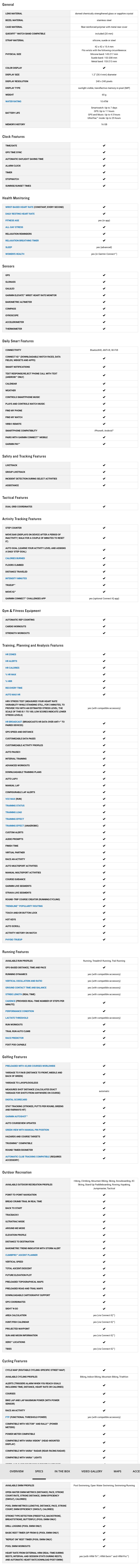 - Mesures de performances avancées : surveillez votre forme et vos performances avec des fonctionnalités d'entraînement sophistiquées, des mesures physiologiques et des profils d'activité préchargés.