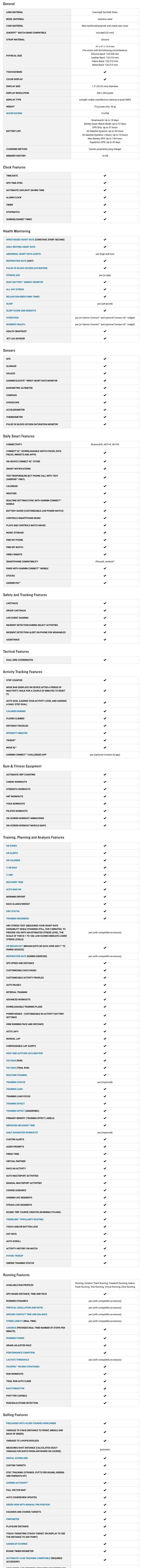 - Mesures de récupération et de performance : bénéficiez de fonctionnalités telles que le conseiller en temps de récupération et l'endurance en temps réel pour optimiser votre entraînement et éviter l'épuisement professionnel.
