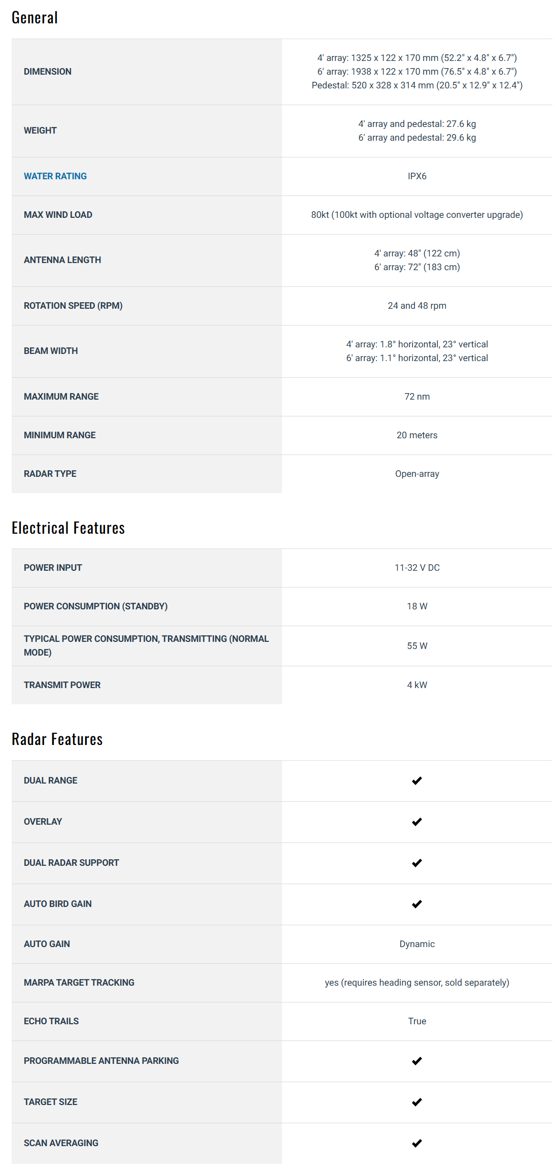 - Detection Range: Targets can be detected up to 96 nautical miles (with 25 kW version).