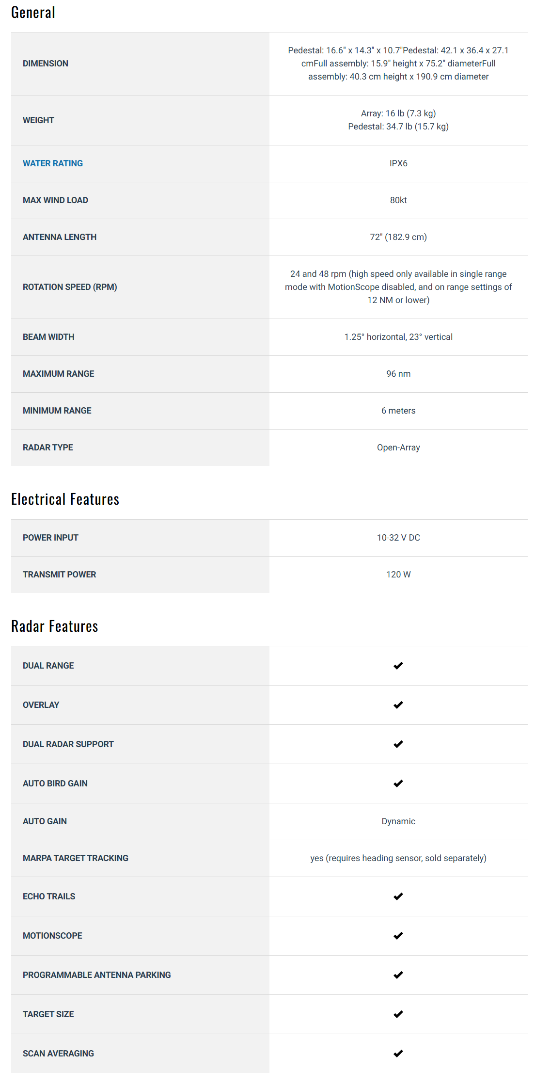 - 120-Watt Power Output: Effective detection range from 20' to 96 nautical miles for reliable tracking in all weather.