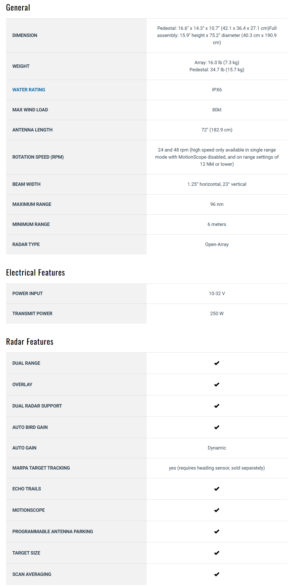 - Detection Range: Extends from 20’ to 96 Nautical Miles, perfect for short and long-range target tracking.