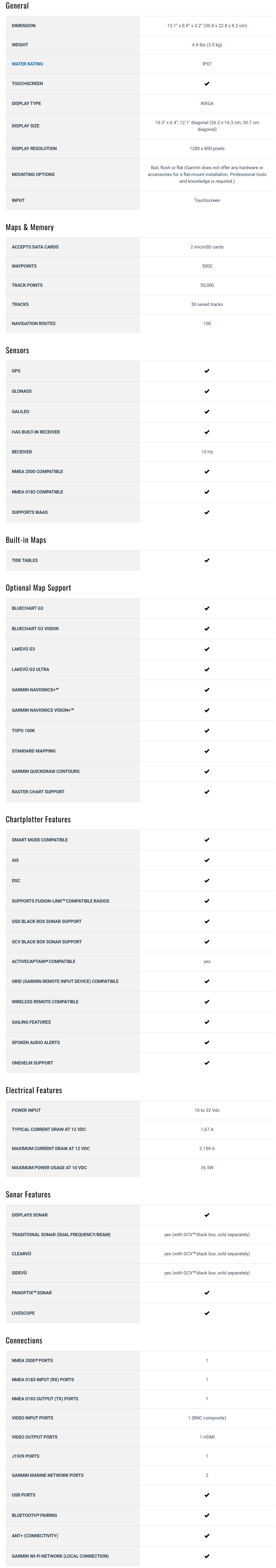 - Garmin Marine Network: Share user data, radar, and maps across multiple compatible Garmin devices.