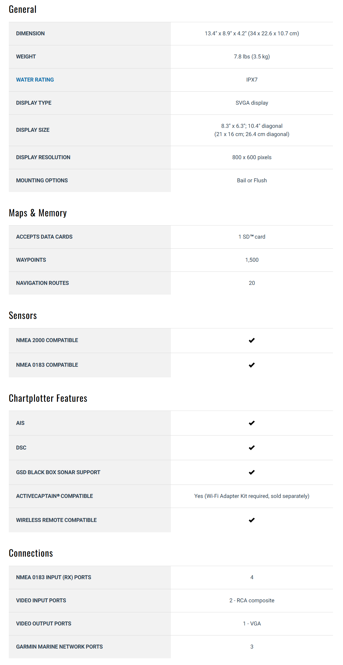 - Garmin Marine Network Connectivity: Easily connect to additional displays and sensors for enhanced situational awareness.