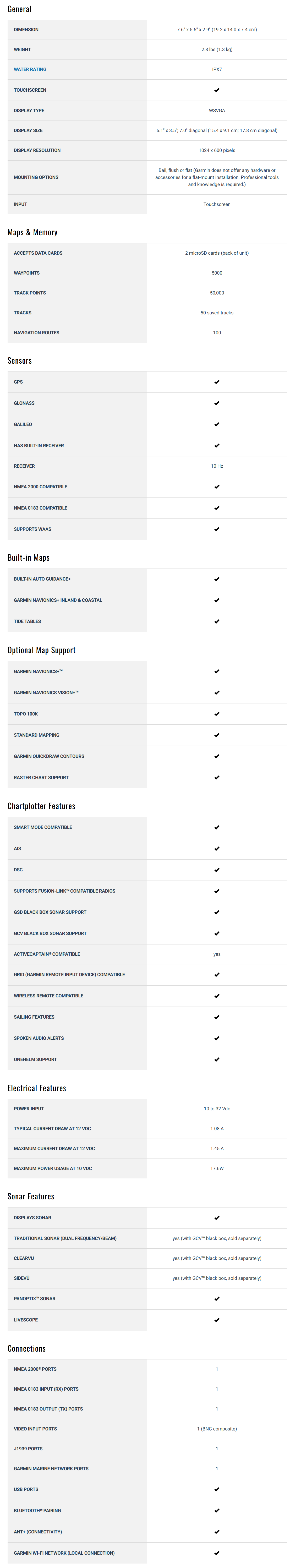 - Preloaded Garmin Navionics+™ Mapping: Access coastal and inland maps with Auto Guidance+™ technology.