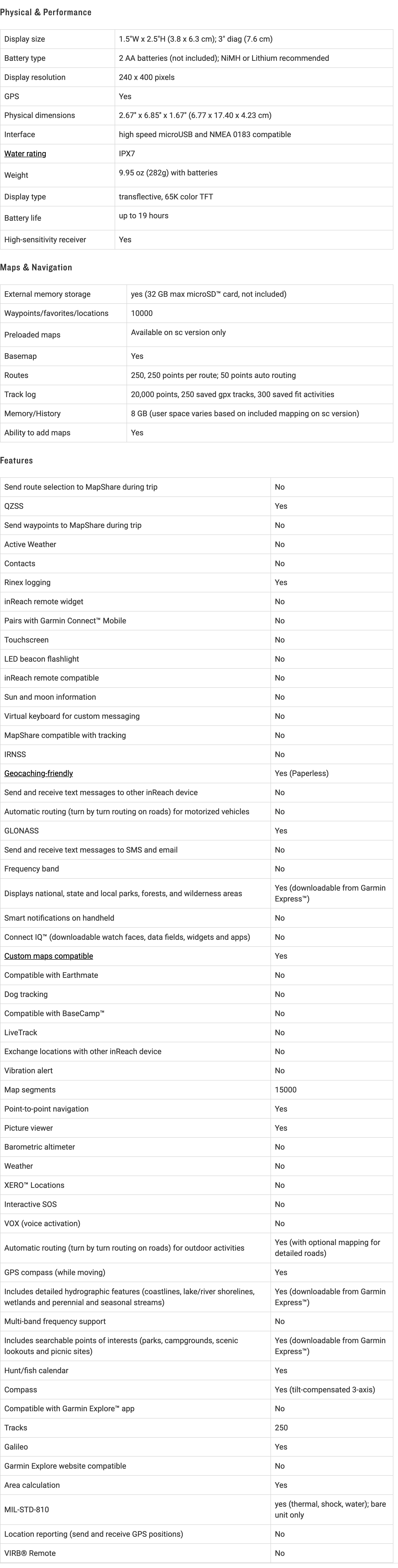 - Capacité de mémoire accrue : enregistrez et suivez 10 000 points de cheminement , 250 itinéraires et 300 fichiers d'activités de fitness avec des capacités de mémoire améliorées.