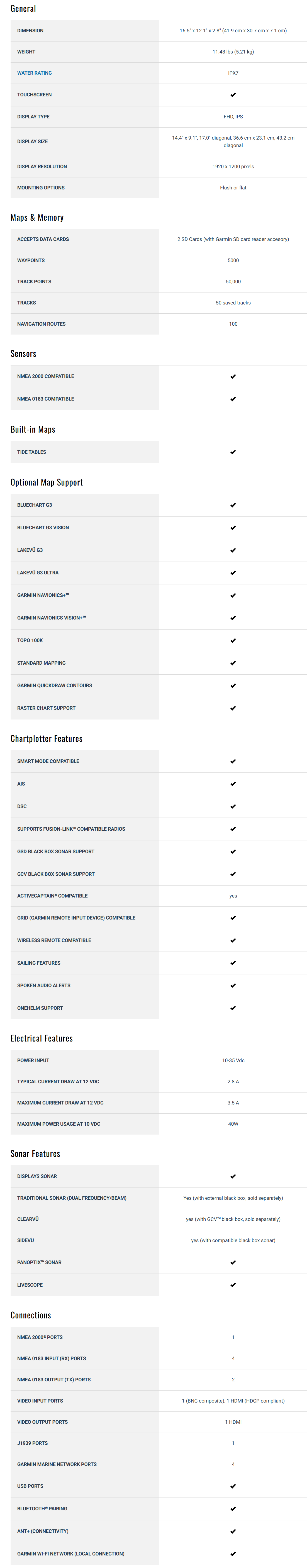 - Seamless Integration: Connects to Garmin Marine Network devices for shared user data and maps, enhancing navigation capabilities.