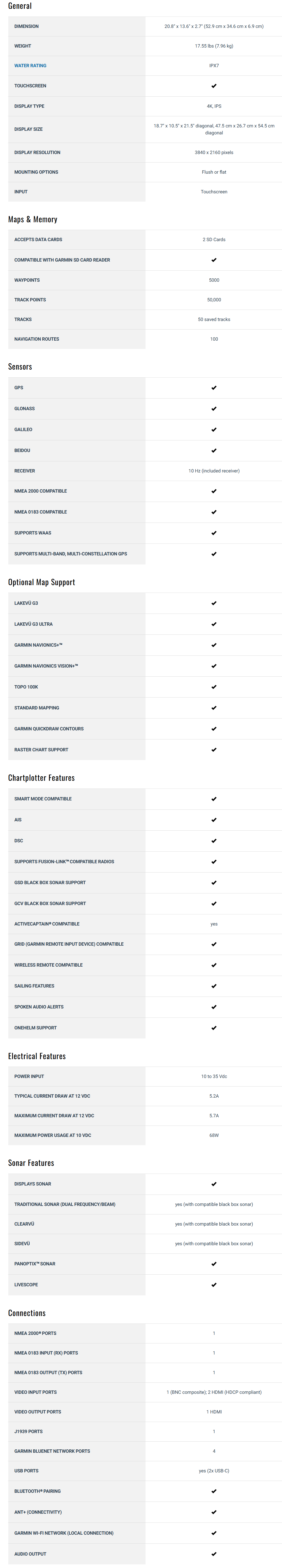 The Garmin GPSMAP® 9022 is a state-of-the-art 4K touchscreen chartplotter designed to elevate your marine navigation experience. With advanced technology and exceptional performance, this chartplotter ensures unparalleled clarity and connectivity. Whether you're a seasoned mariner or a recreational boater, the GPSMAP® 9022 provides the tools you need for effective navigation and enhanced safety on the water.