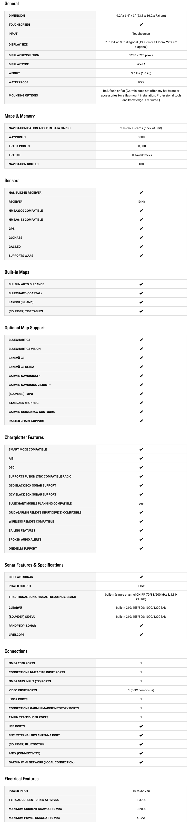 - Prise en charge du sonar Panoptix : associez-le à Panoptix ou LiveScope pour obtenir des images sonar en temps réel autour de votre bateau (transducteur requis, vendu séparément).