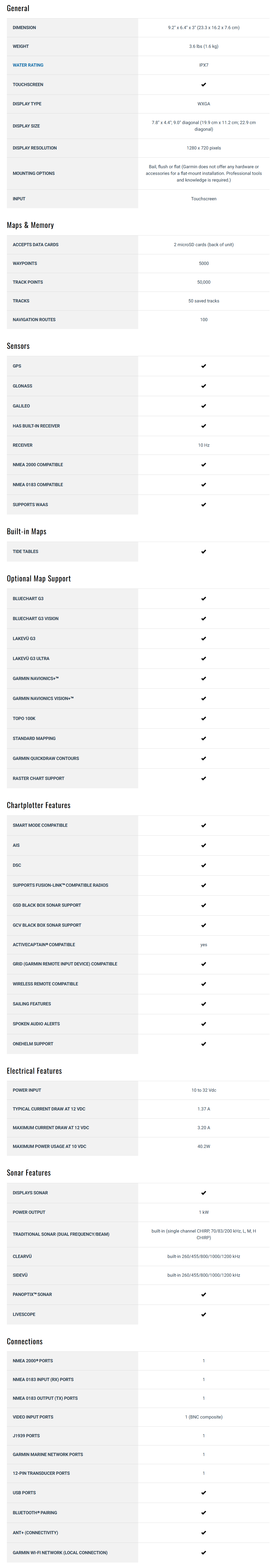 Garmin GPSMAP 923xsv SideVü, ClearVü and Traditional CHIRP Sonar with Worldwide Basemap (010-02366-02)