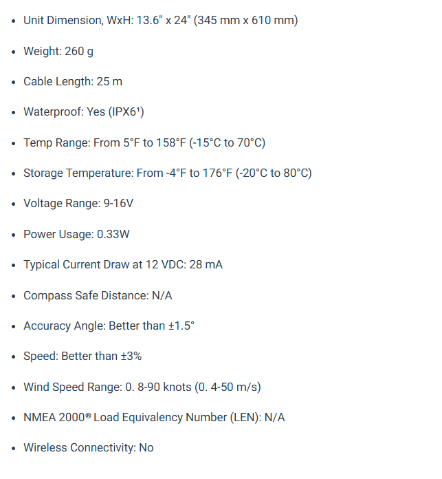- Three-Bladed Propeller: Ensures highly accurate True Wind Speed (TWS) readings, especially effective in low wind conditions.