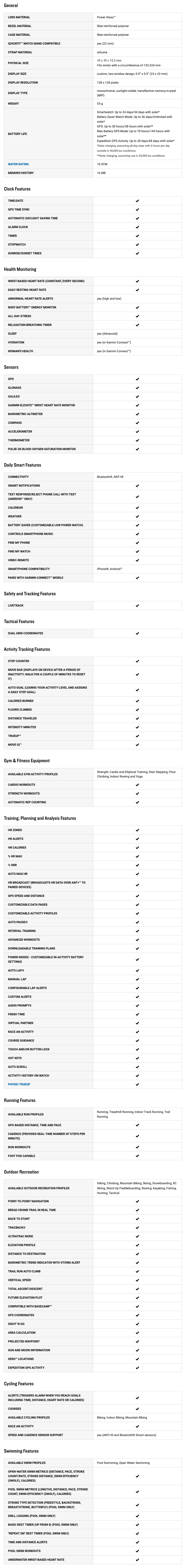 - Surveillance avancée de la santé : des fonctionnalités telles que la fréquence cardiaque au poignet, le capteur Pulse Ox pour l'absorption d'oxygène, le suivi du stress et le moniteur d'énergie Body Battery vous aident à optimiser votre santé et vos performances.