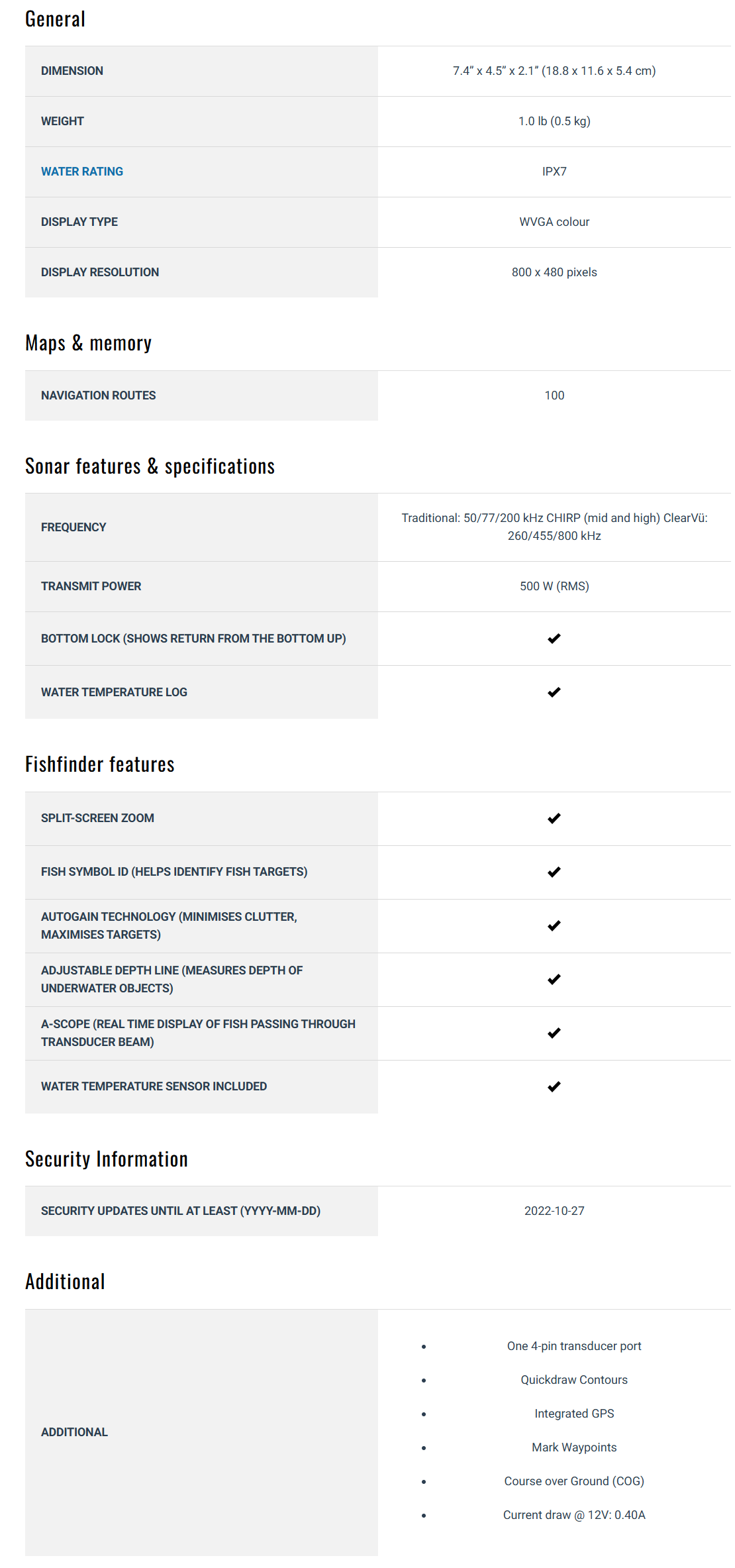 - Sonar Compatibility: Supports Garmin CHIRP traditional sonar and ClearVü sonar (transducer sold separately).