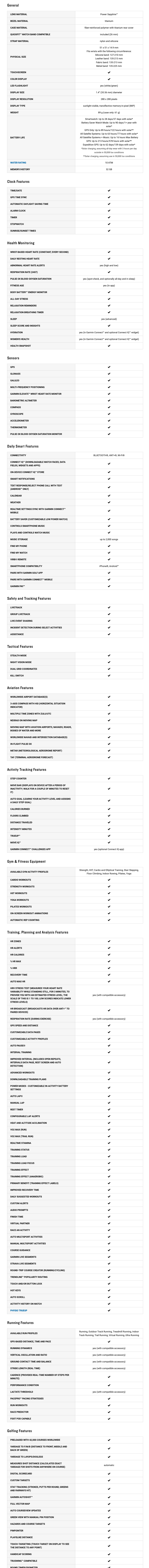 - Chargement solaire Power Sapphire™ : exploitez la puissance du soleil avec un objectif de chargement solaire, offrant jusqu'à 37 jours d'autonomie de la batterie en mode montre intelligente et 122 heures en mode GPS.