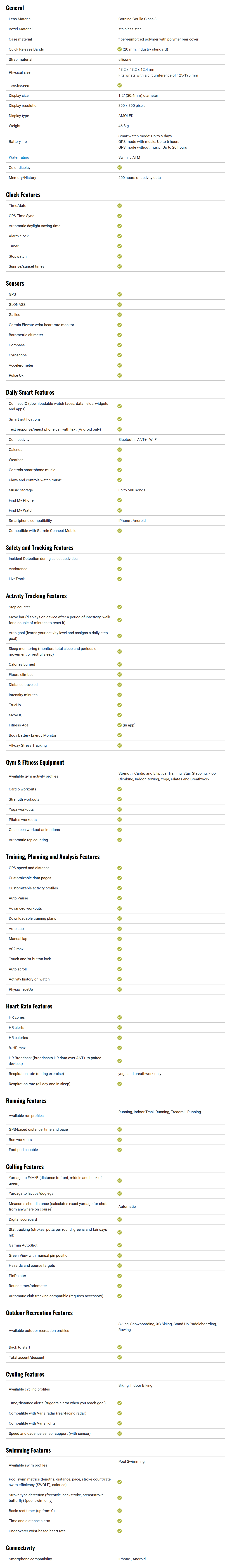 - Garmin Coach : obtenez un coaching gratuit et personnalisé pour courir des courses de 5 km, 10 km ou semi-marathon pour vous aider à atteindre vos objectifs d'entraînement.