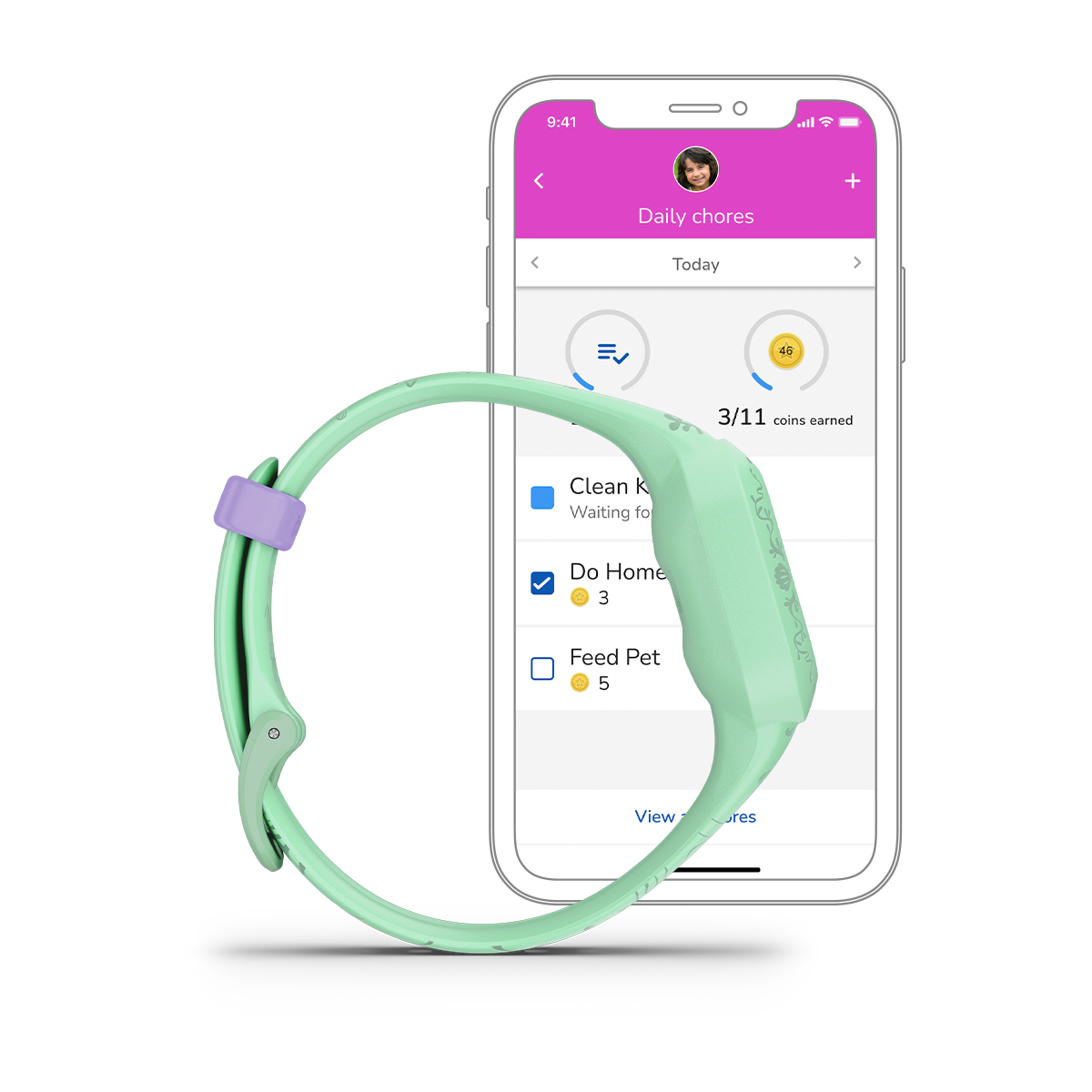 • Application Garmin Jr. : les parents peuvent synchroniser le tracker pour surveiller l'activité, les pas, le sommeil et même les tâches ménagères.