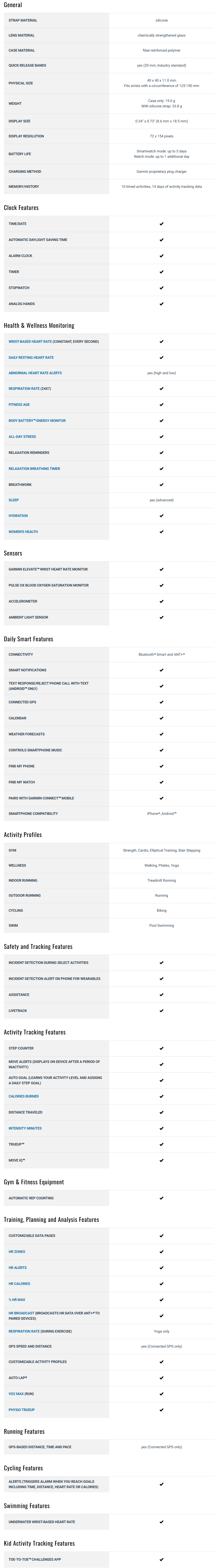 - Suivi de la condition physique : le vívomove Sport suit les pas, les calories, les minutes d'intensité et bien plus encore, en synchronisant les données avec les montres intelligentes Garmin.