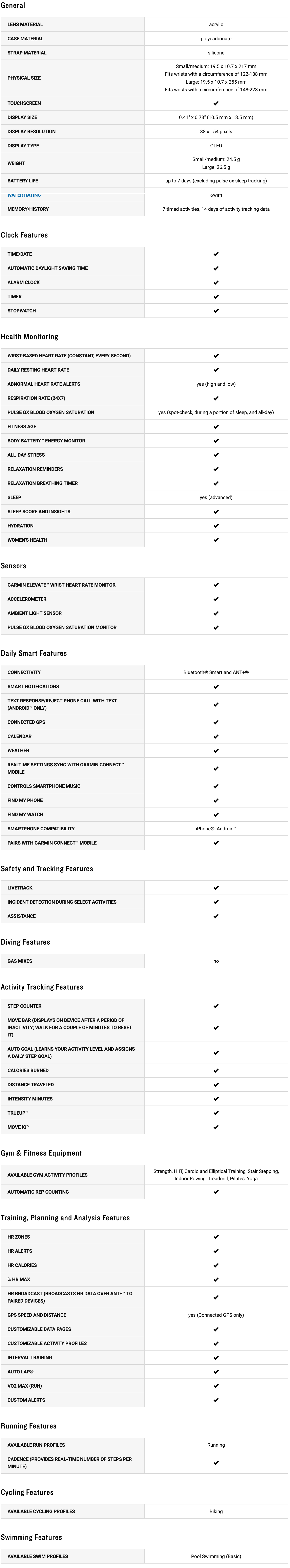 - Suivi avancé du sommeil : recevez un score de sommeil et des informations sur la qualité de votre sommeil via l'application Garmin Connect.