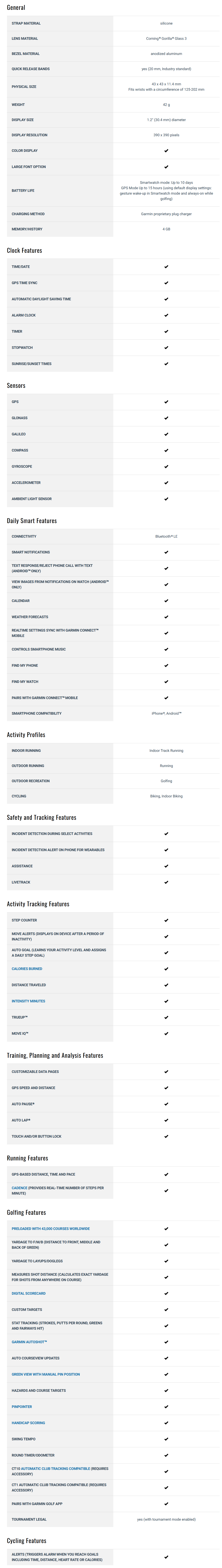 - Game Tracking: Keep score directly on the watch and upload it to the Garmin Golf™ app for detailed stat tracking.