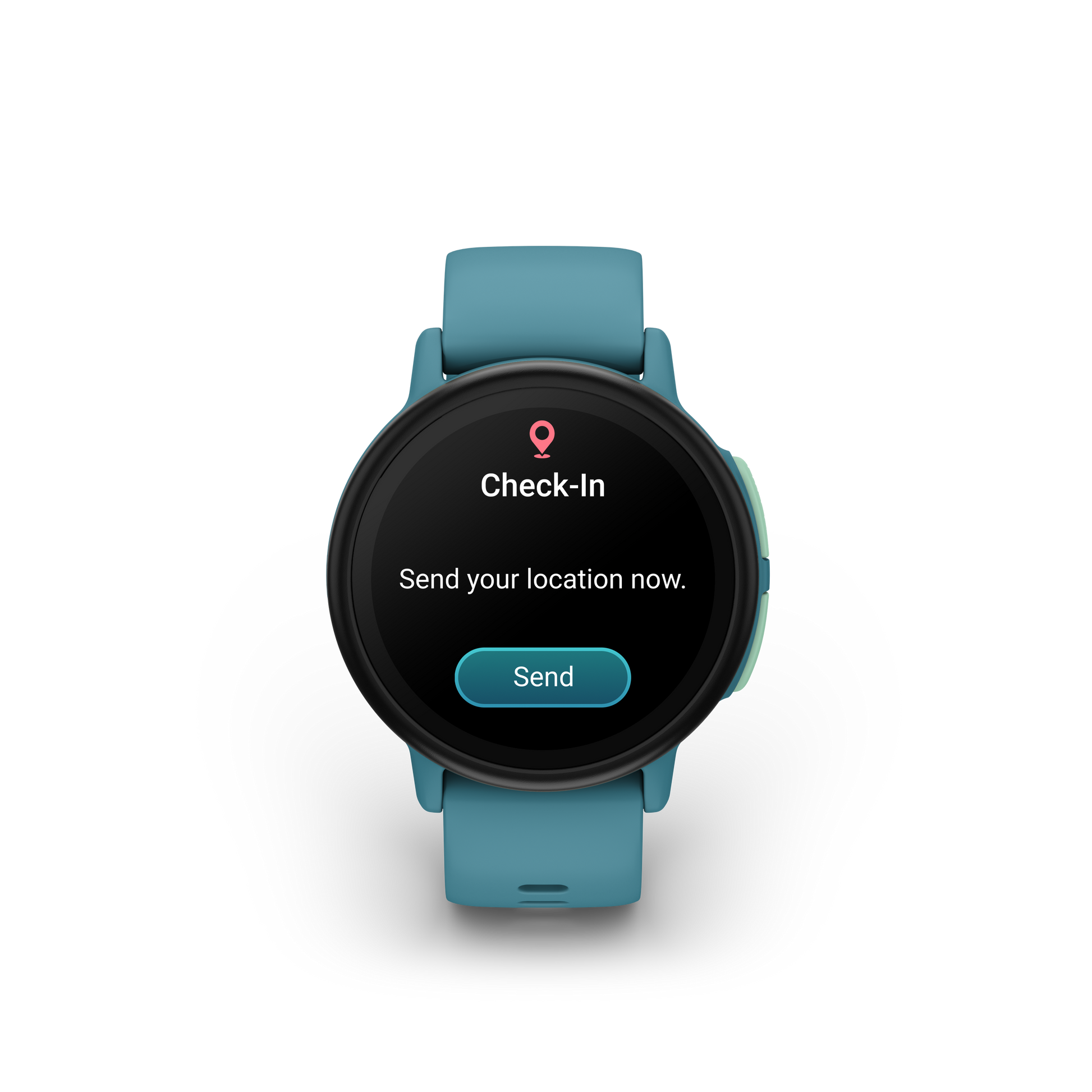 The Bounce 2 combines a kid-friendly round design with rugged materials built to withstand active use. Its turquoise accents, comfortable silicone strap, and durable build are designed to last through sports, swimming, and everyday wear. The device emphasizes safety without compromising on readability or usability during workouts and outdoor excursions.