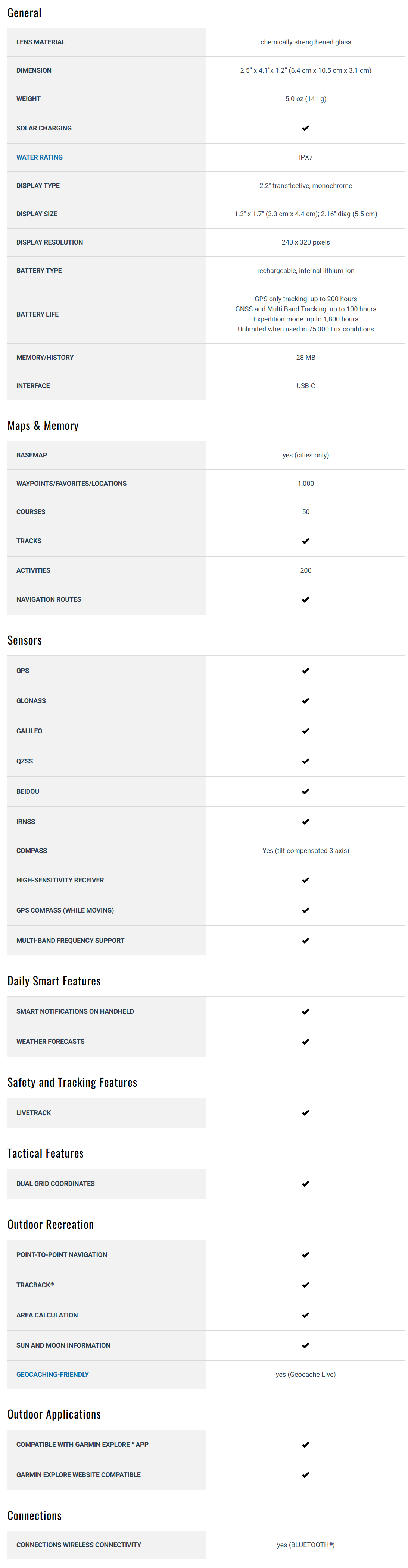 • Solar Panel: Integrated solar panel provides additional battery life when exposed to sunlight.