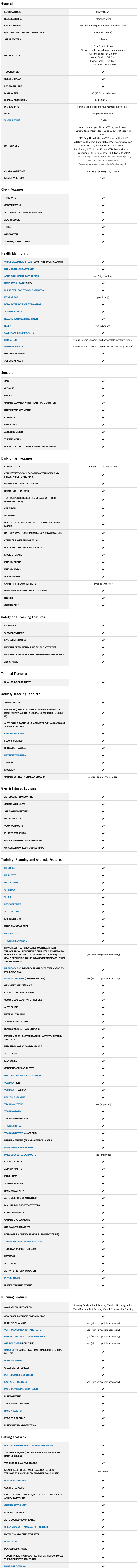 • Solar Charging: Features a Power Glass solar charging lens, extending battery life up to 37 days in smartwatch mode and 89 hours in GPS mode.