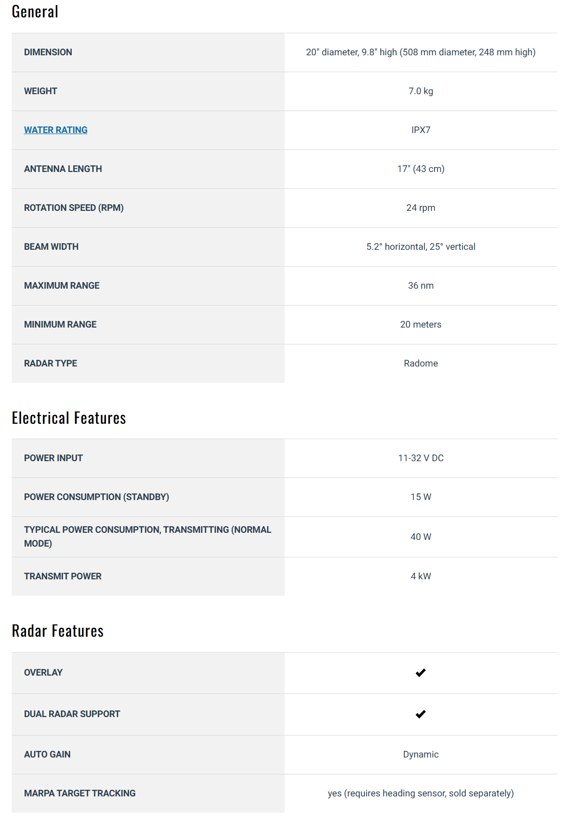 • 4kW Power Output: Provides clear echo definition at all ranges, with a maximum range of 36 nautical miles.