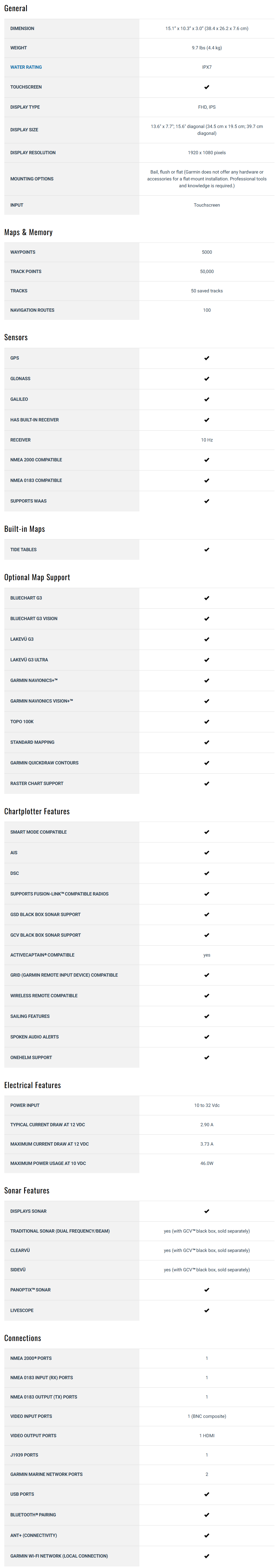 • Garmin Navionics+™ Integration: Includes inland and coastal charts with a 1-year subscription for updates.