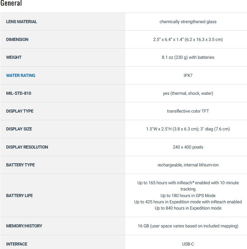 - Long Battery Life: Up to 425 hours in Expedition Mode with inReach technology and low-power tracking.