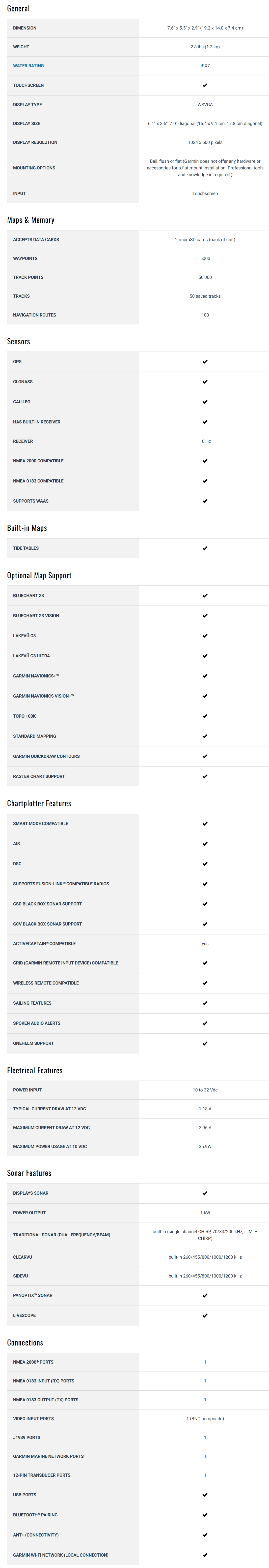• Preloaded Garmin Navionics+™ Charts: Offers comprehensive coastal and inland mapping with Auto Guidance+™ technology.