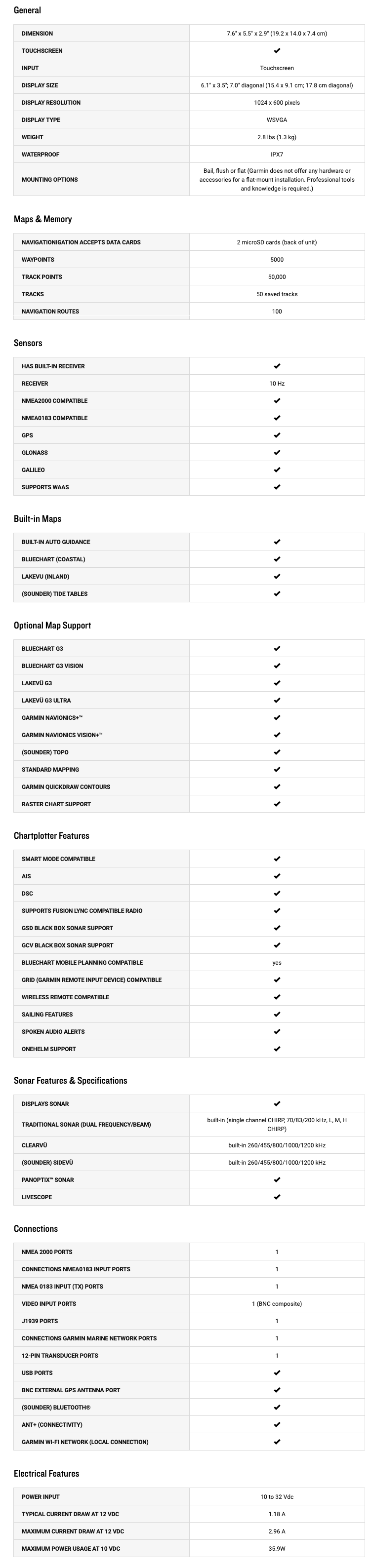 - Preloaded Mapping: Navigate confidently with preloaded BlueChart g3 coastal charts and LakeVü g3 inland maps, featuring Auto Guidance technology.