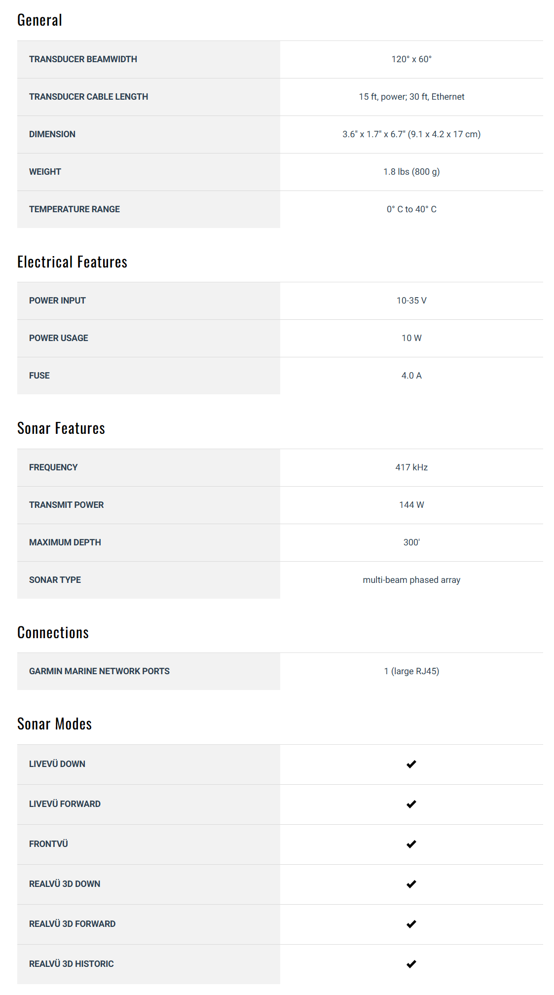• Wide Sonar Beam: 120° x 8° beam for expansive coverage.
