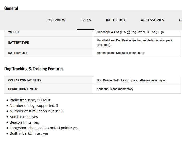 - Durability: Water-rated to IPX7; the handheld device floats, while the dog device is rated to 1 ATM (10 meters).
