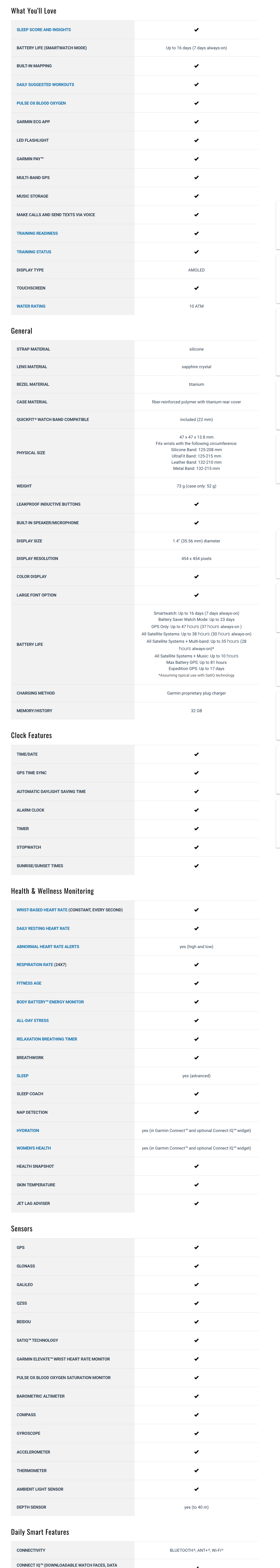 • Battery Life: Up to 16 days in smartwatch mode, so you can stay powered on long missions.