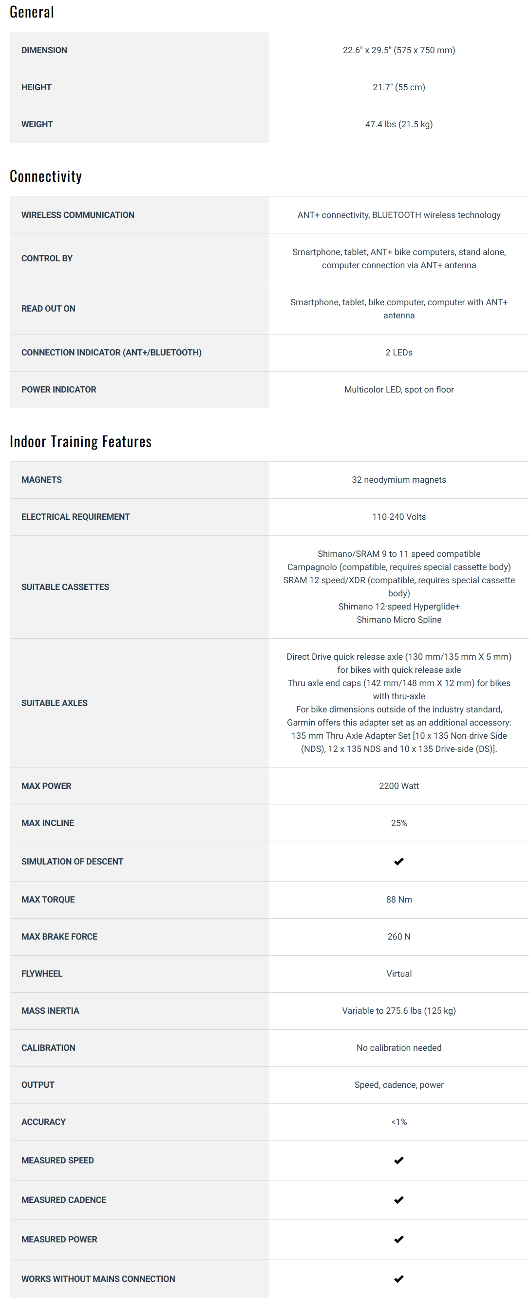 - Noise Reduction: Redesigned magnets minimize air displacement and vibrations, making it one of the quietest trainers on the market.