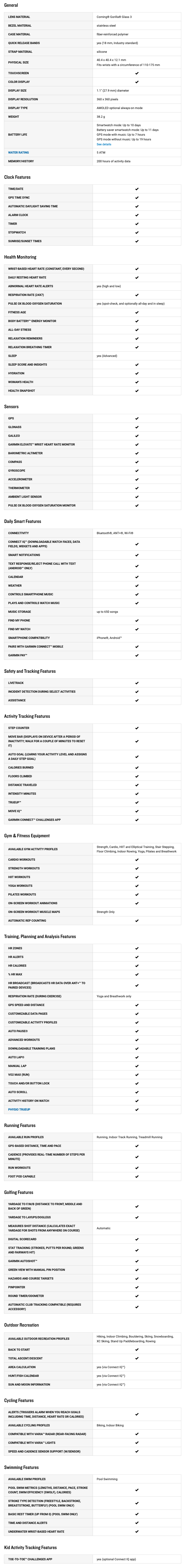 • Health Snapshot Feature: Log a quick 2-minute session to record key health stats and generate a report via the Garmin Connect app.