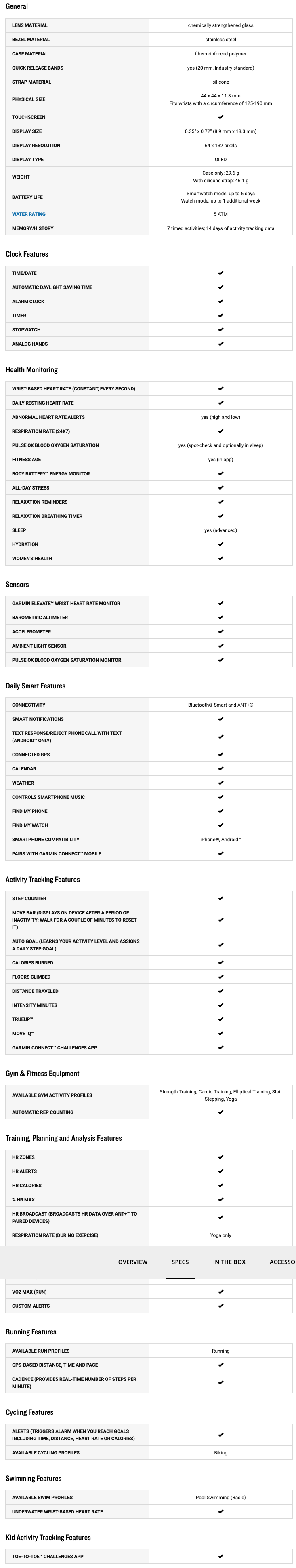 - Health Monitoring: Comprehensive health tracking including Pulse Ox estimation, Body Battery energy monitoring, stress management, and sleep tracking.